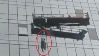 Trabajador pasa momentos de terror colgado de andamio durante tormenta