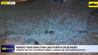La puerta de vidrio templado, popularmente conocida como blindex, de una farmacia se rompió accidentalmente y sin motivo aparente y terminó hiriendo en la mano derecha a un funcionario.