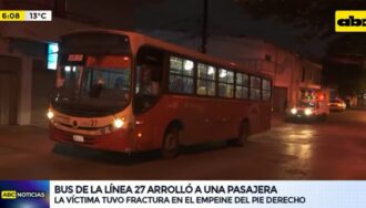 Una pasajera de la Línea 27 fue arrollada por el ómnibus tras sufrir un resbalón en el momento en que el vehículo se movió y terminó con heridas en el pie. La mujer fue auxiliada y llevada hasta el Hospital de Trauma.