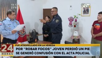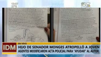 Ocho policías fueron sumariados tras la supuesta adulteración de un acta policial, para favorecer al hijo del senador Juan Darío Monges, quien está imputado por arrollar a un joven que posteriormente perdió parte de la pierna derecha. Juan Monges Espínola está procesado por lesión grave y se dispuso que guarde prisión preventiva.
