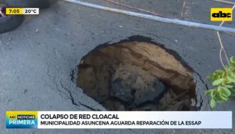 Un enorme pozo pone en riesgo a ciudadanos usuarios de la calle Bernardino Caballero del barrio Herrera de Asunción. La comuna capitalina responsabiliza y aguarda la intervención de la ESSAP, para luego reponer la capa asfáltica.