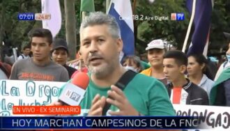 Miembros de la Federación Nacional Campesina (FNC) se concentran en zona del exseminario Metropolitano, desde donde marchan por las principales arterias de Asunción, hasta llegar al centro de la capital.