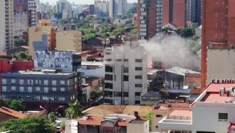 En la mañana de este martes se registró el incendio de la parte alta de un edificio ubicado en las inmediaciones de las calles 25 de Mayo y Estados Unidos. Un obrero habría sufrido una electrocución.