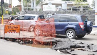 El temporal que azotó en la madrugada de este jueves se llevó gran parte del asfaltado sobre la avenida Santa Teresa. Vecinos denuncian que la Essap realiza trabajos y no los concluye.