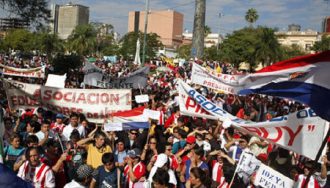 La huelga docente en su segundo día registra un nivel de acatamiento inferior al de la víspera. Representantes de los gremios esperan más docentes lleguen desde distintos puntos del país para sumarse a la medida de fuerza.