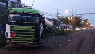 Un camión cisterna chocó contra una columna en la avenida Madame Lynch, sin dejar heridos pero causando caos en el tráfico.