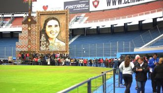 La imagen de Chiquitunga se expone en el estadio Pablo Rojas, de la Nueva Olla y cientos de fieles se acercaron hasta el lugar para observar la obra de arte realizada por el artista Koki Ruíz. Las personas quedaron maravilladas por el trabajo magnánimo.