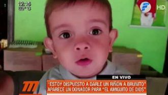 El pequeño Bruno Martínez, de cuatro años, necesita realizarse numerosos estudios y subir de peso para ingresar a lista de espera, de acuerdo a los datos brindados por su madre. El miércoles un joven se ofreció voluntariamente donarle un riñón.