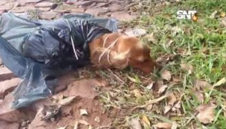 Pobladores del Barrio Lerida, de San Lorenzo, encontraron a un perro de la raza Cocker Spaniel, atado en bolsa de basura, golpeado y tirado en la vía pública. El animal fue rescatado con vida por el grupo Olfateando huellas, quienes nombraron al cachorro como Kokito.