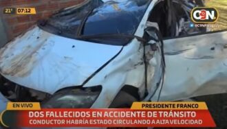 Una joven pareja falleció luego de que el automóvil en el que se desplazaban volcara en la avenida Monday, a la altura del kilómetro 11 de Presidente Franco.