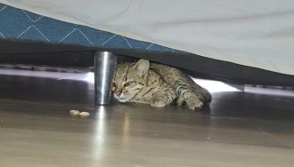 Un tirika se ocultó bajo una cama en Ciudad del Este, sorprendiendo a una familia. Bomberos lo rescataron y lo llevaron al Centro Ambiental de Itaipú.