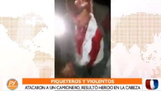 Un camionero que transportaba mercadería, fue perseguido por piqueteros, quienes al alcanzarlo destrozaron el camión de su colega y lo agredieron ocasionando que la víctima vuelque su vehículo de gran porte.