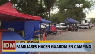 Familiares de pacientes internados por Covid-19 en el Hospital Ingavi del Instituto de Previsión Social (IPS) están acampando en inmediaciones del centro asistencial por no contar con un lugar dentro del edificio.