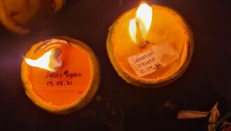 Koki Ruiz encendió en el patio de su casa 1.500 velas para recordar a las personas que fallecieron a causa de coronavirus.