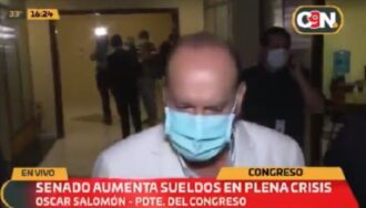 El presidente de la Cámara de Senadores, Oscar Salomón, no quiso responder a las consultas sobre el polémico aumento salarial a funcionarios en medio de la pandemia.