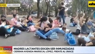 Un grupo de mujeres lactantes llegó hasta la sede de la UNACE, que funciona como vacunatorio, para exigir su inmunización al Ministerio de Salud.