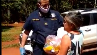 Agentes policiales de la Comisaría 5° de Hernandarias realizaron entrega de canastas de víveres a familias de escasos recursos de los barrios Ka’avo Rory y 13 de Junio.