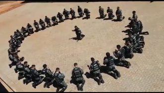 Arrodillados formando un gran círculo, varios agentes del Grupo Lince oraron de manera muy emotiva. Los mismos tienen la tarea de hacer cumplir el decreto que obliga a todo ciudadano a permanecer en su hogar durante la cuarentena, excepto necesidad impostergable.
