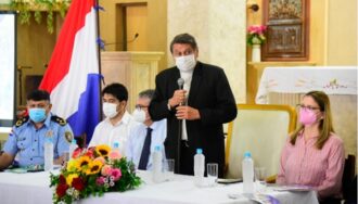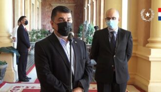 El ministro de Salud, Julio Borba, en compañía del doctor Héctor Castro, director del Programa Ampliado de Inmunizaciones (PAI), se reunieron con el presidente de la República, Mario Abdo Benítez, para informarle acerca del proceso de vacunación contra el Covid-19 que se lleva a cabo.