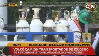 Un camión que transportaba oxígeno se volcó en Curuguaty, en consecuencia, se perdieron 10 toneladas del gas vital para los pacientes con Covid-19.