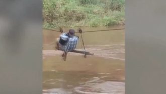 En Amambay, diez maestros cruzan el río Aquidabán en balsa para llegar a la escuela Piqui Cuá, mientras la espera por un puente sigue sin respuesta.