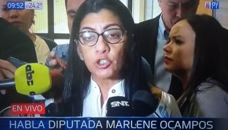 La diputada Marlene Ocampos del Partido Colorado brindó declaraciones a la prensa sobre el nombramiento de su hija, Evelyn Segovia como directora de Promoción y Gestión Cultural de la Cámara de Diputados. Tras una reunión familiar decidieron que debe de renunciar, para dar tranquilidad a la ciudadanía.