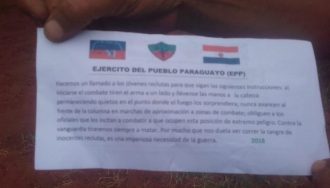 En la tarde del viernes, panfletos que serían del autodenominado Ejército del Pueblo Paraguayo (EPP), fueron hallados por trabajadores de una estancia. La Fiscalía se encuentra analizando los escritos.