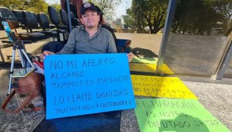 Hugo Rolón, exfuncionario del Congreso, reanuda su protesta contra el diputado Jatar Fernández, denunciando maltratos y exigiendo justicia laboral.
