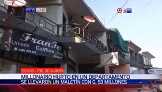 Un millonario robo se dio en el interior de un departamento, ubicado en Fernando de la Mora. Un total de G. 53 millones, que se encontraba en un maletín fue hurtado, además de un arma de fuego.