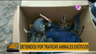 La Policía Nacional detuvo a cinco personas por traficar animales exóticos. Según los intervinientes, tenían en su poder tres guacamayos azules que serían comercializados.