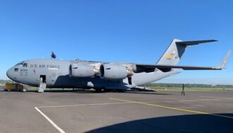 Avión carguero de la Fuerza Aérea de EE.UU. se exhibe en Ñu Guasu