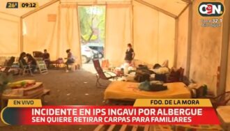 Funcionarios de la Secretaría de Emergencia Nacional (SEN) se presentaron este martes en el Hospital Ingavi del Instituto de Previsión Social (IPS) con la intención de retirar la carpa donde se instalan los familiares de los pacientes.