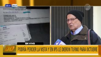Un asegurado del Instituto de Previsión Social (IPS) de 82 años con rabia e impotencia manifestó que podría perder la vista y denuncia que en la previsional le dieron turno para su intervención para dentro de tres meses.