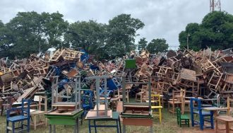 Concejales de Limpio reclaman la reutilización de pupitres de madera abandonados tras ser reemplazados por mobiliario de origen chino.