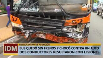 Un bus de la Línea 12 de la empresa Magno impactó contra un vehículo y varios árboles en el centro de Asunción.