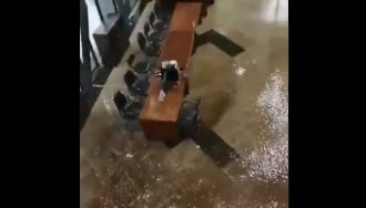 Varias dependencias del Parlamento quedaron bajo agua, durante el temporal de este lunes. Parte de cielo raso del cuarto piso se desplomó.