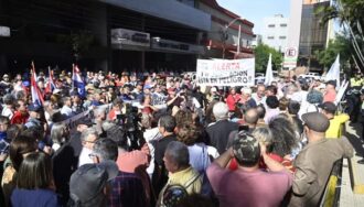 Asegurados, jubilados y pacientes oncológicos del IPS se manifestaron frente a la caja central, exigiendo soluciones a las múltiples problemáticas que enfrentan en la previsional.