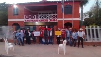Trabajadores municipales y concejales de Puerto Casado se manifestaon en un dramático reclamo por salarios y dietas impagos.