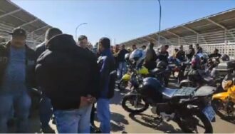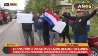 Conductores de plataformas, de camiones de carga, repartidores y mototaxis ya se encuentran manifestándose frente a Petropar en Villa Elisa. Exigen que baje los precios de los combustibles G. 1.500.