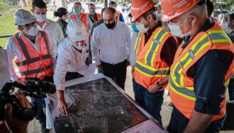 El Presidente de la República Mario Abdo Benítez fue a verificar las obras de la futura costanera de Pilar, capital del departamento de Ñeembucú.