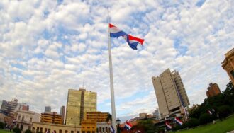 El Presidente de la República Mario Abdo Benítez acompañado de la primera dama, Silvana Abdo, participó este domingo del izamiento del Pabellón y entonación del Himno Nacional. La ceremonia se realizó en conmemoración a los 211 años de Independencia Nacional.