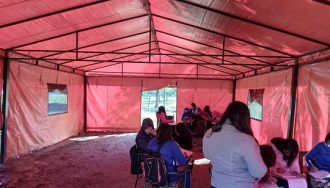Ante la falta de aulas, estudiantes de Remansito recibieron carpas para refugiarse del frío. Padres denuncian abandono estatal y exigen soluciones.