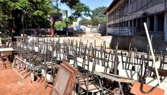 Tras el traslado temporal de los estudiantes por las obras de rehabilitación, gran parte del mobiliario escolar del Colegio Nacional de la Capital quedó en el predio.