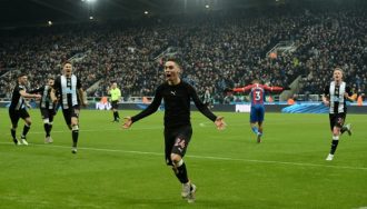 El paraguayo Miguel Almirón trabajó en un fino caño en el partido entre su club, el Newcastle, y el poderoso Manchester United.