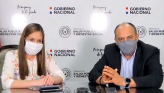 La viceministra de Economía, Carmen Marín, y el viceministro de Salud, Julio Rolón, brindaron una conferencia de prensa para dar detalles de las medidas a tomar ante la escasez de medicamentos para pacientes internados por Covid-19.