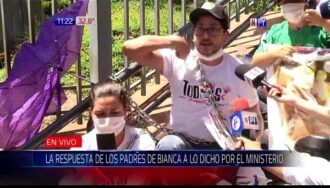Los padres de la niña Bianca se encadenaron frente al Ministerio de Salud exigiendo explicaciones sobre lo mencionado por la Comité de Bioética.