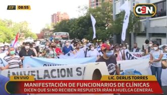En la mañana de este martes, funcionarios del Hospital de Clínicas se manifestaron en inmediaciones del Ministerio de Salud, así también representantes de jardines y guarderías.