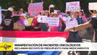Pacientes con cáncer se manifestaron en la mañana de este miércoles frente al Ministerio de Salud en protesta contra el recorte presupuestario para la atención oncológica y exigir la provisión de fármacos para proseguir con sus tratamientos.