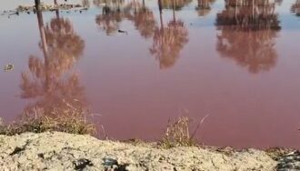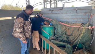 El fiscal del Medio Ambiente, Carlos Rojas, se presentó junto con técnicos del INTN en la curtiembre denunciada para indagar contaminación y también realizaron levantamiento de muestras de agua.