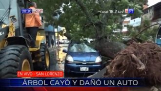 La tormenta que se registró este miércoles generó los primeros destrozos. Esta vez en San Lorenzo, donde un frondoso árbol cayó y afectó a un vehículo que estaba estacionado en la zona.